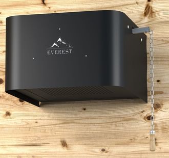Обливное устройство ЭВЕРЕСТ представляет собой бак из нержавеющей стали, автоматически наполняемый водой. Количество воды в баке регулируется с помощью клапана подачи воды. Максимальный объём воды в баке – 15 литров. Бак обливного устройства устанавливается на высоте 2-2,2 метра. Вода для облива после парилки подаётся с помощью рукоятки на цепи. Широкое основание бака с большим количеством мелких отверстий обеспечивает оптимальный по размеру и интенсивности поток воды. Равномерная подача большого объёма воды обеспечена за счёт трех выпускных клапанов, одновременно открывающихся при потягивании рукоятки вниз.